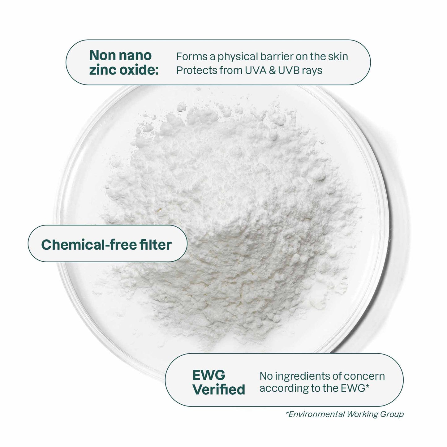 Enthält Nicht-Nano-Zinkoxid, einen mineralischen Filter, der eine reflektierende Barriere zum Schutz der Haut bildet