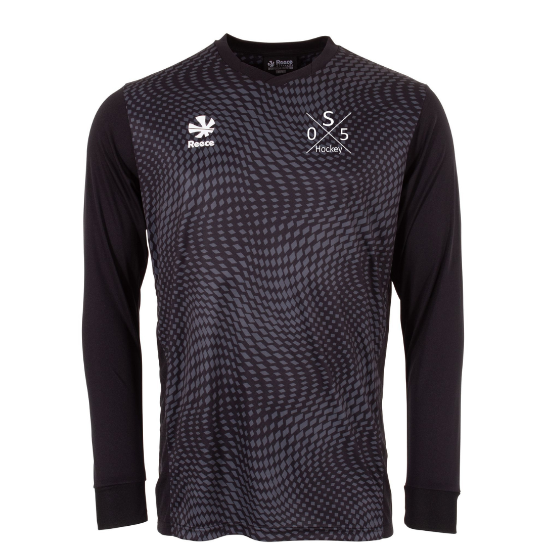 Dieses bequeme Torwartshirt mit Stretch ist ideal für Hockey, da es durch seine geräumige Passform auch über der Schutzkleidung getragen werden kann. Die Bündchen sind mit bequemem gerippten Material verarbeitet und haben einen hohen Stretchanteil. Das Muster auf dem Körper ist sublimiert und bleibt daher auch nach häufigem Waschen schön. Das Torwarttrikot hat einen minimalen V-Ausschnitt und aufgedruckte Logos. Mesh an den Seitennähten sorgt für ausreichende Belüftung. Die Rückseite des Shirts ist für eine optimale Passform etwas länger als die Vorderseite.