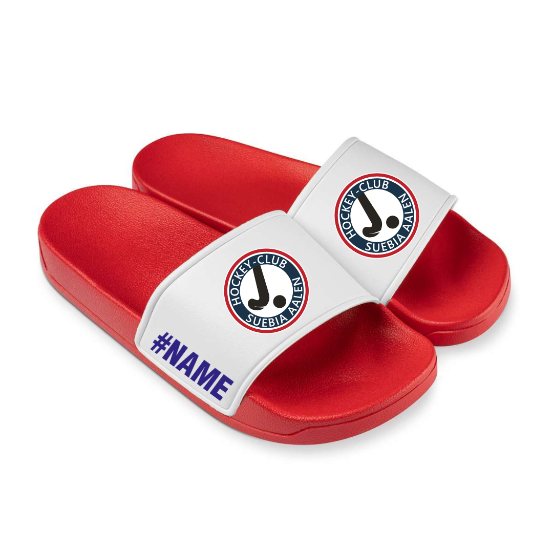Veredeln Sie Ihre Badelatschen mit Initialien, Ihrer Lieblingsnummer oder Ihrem Namen – das perfekte Statement für jeden Hockey-Fan der Suebia Aalen