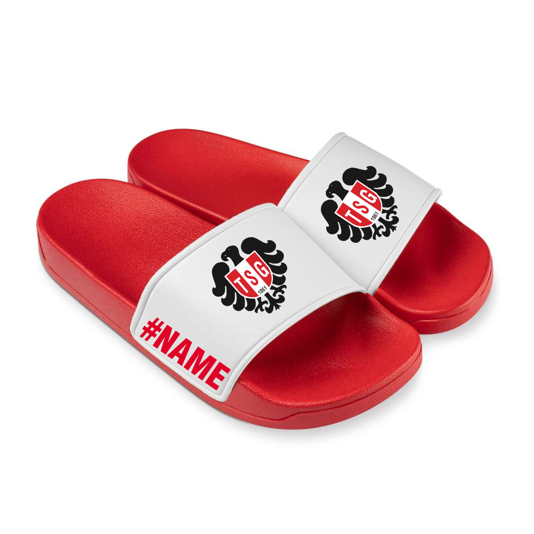 Veredeln Sie Ihre Badelatschen mit Initialien, Ihrer Lieblingsnummer oder Ihrem Namen – das perfekte Statement für jeden Hockey-Fan des TSG Kaiserslautern.
